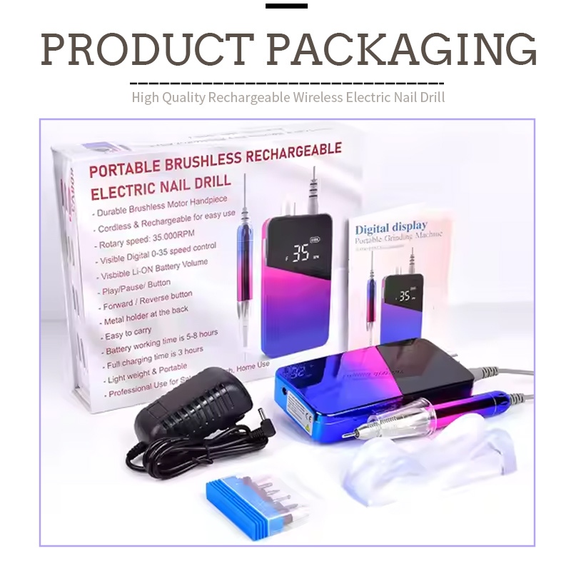 O conteúdo deste pacote de furadeira elétrica de pregos de 30.000 rpm inclui uma caneta de lixa, um cabo de carregamento USB, um manual de instruções do produto e uma caixa leve e portátil.