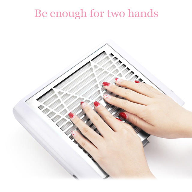 O produto é um aspirador de pó de alta potência para cuidados com as unhas, a área limpa e confortável do ambiente para cuidados com as unhas é grande e não vaza poeira para criar, diga adeus à maneira antiga de operação de manicure é simples, os materiais de alta qualidade são sólidos e bonitos, com painéis de metal e produtos de produção de plástico ABS de alta qualidade são produtos sólidos e duráveis, com aparência suave e simples.