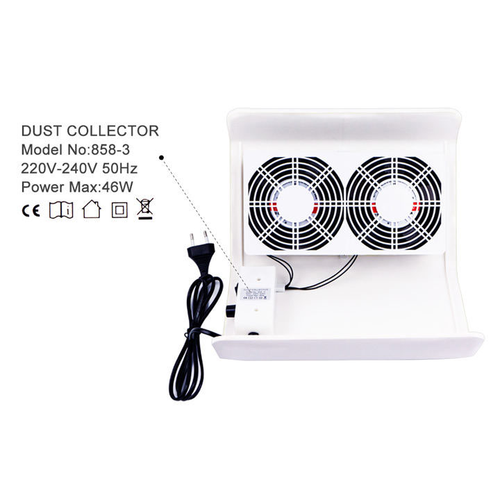 5. Com 2 ventiladores aspirador de unhas, super capacidade e área, forte sucção, durável em uso. Ventilador potente, alta velocidade, baixo ruído, bom efeito de aspiração. Pode ser removido e substituído à vontade, lavável e mantido limpo, reciclando.