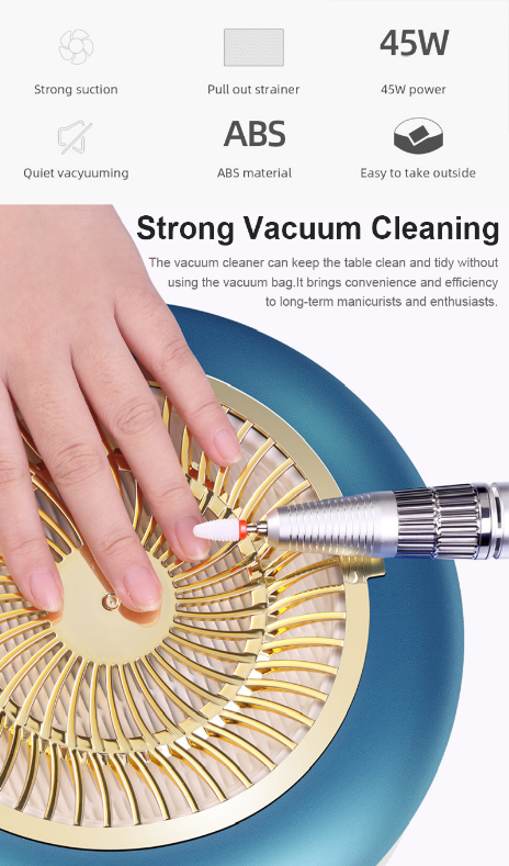 Produtos com forte adsorção de detritos de unhas não vazam poeira, mantêm a bancada limpa e arrumada, a aspiração rápida não vaza poeira de alta potência mais eficiente.