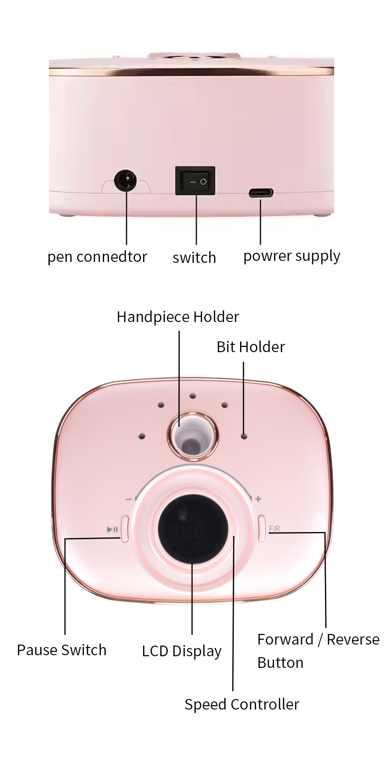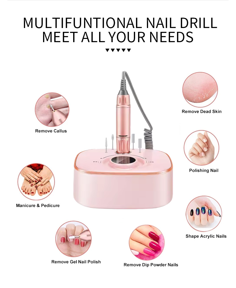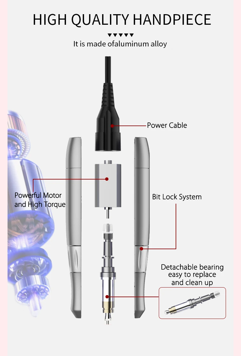 Conjunto de broca de unhas elétrica para remover esmalte em gel 65w 35000rpm