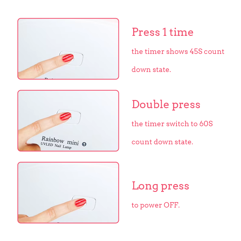 • Lâmpadas LED de alta potência para cura rápida do gel em 10 segundos