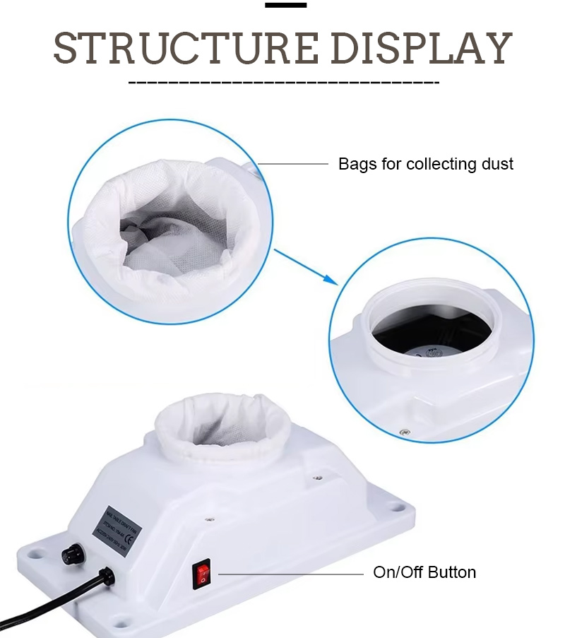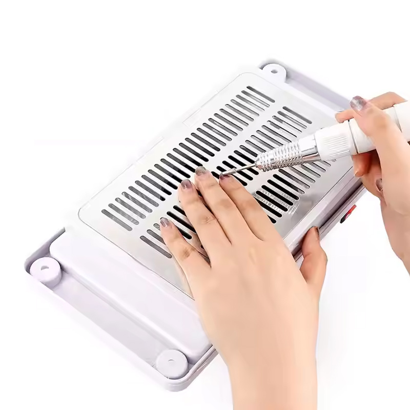 Sim. OColetor de pó de unha embutido em mesa foi projetado especificamente para não haver vazamento de poeira. O forte poder de sucção de 45 W, combinado com uma vedação eficaz em torno da área de entrada, garante que as partículas de poeira sejam capturadas na fonte, em vez de escaparem de volta para o espaço de trabalho. Durante o lixamento pesado de acrílico, a unidade mantém um desempenho de sucção consistente, mantendo as bancadas limpas e evitando que a poeira se espalhe pelo ar. Para técnicos que realizam vários serviços de acrílico diariamente, essa captura confiável de poeira reduz significativamente a exposição cumulativa à poeira.