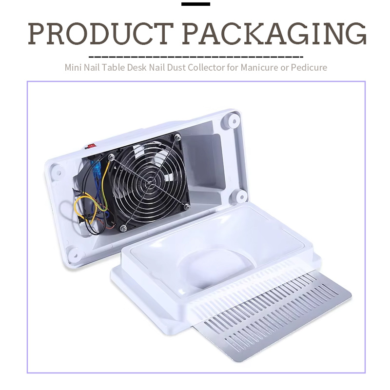 OColetor de pó de unha embutido em mesa é uma unidade de extração de pó integrada projetada para ser instalada diretamente em uma estação de trabalho de salão. Ao contrário das unidades portáteis que ficam em cima da mesa, este modelo integrado cria um espaço de trabalho integrado e organizado. Ele captura o pó de acrílico e gel na fonte durante os serviços de lixamento e modelagem, evitando que partículas transportadas pelo ar se acumulem nas superfícies ou sejam inaladas por técnicos e clientes.