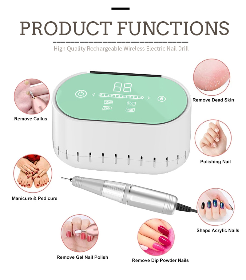 Broca de unhas de arquivo elétrico de alta potência recarregável