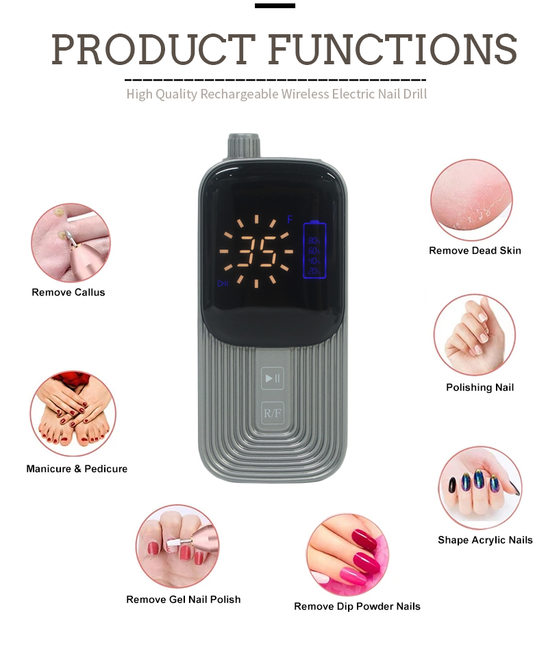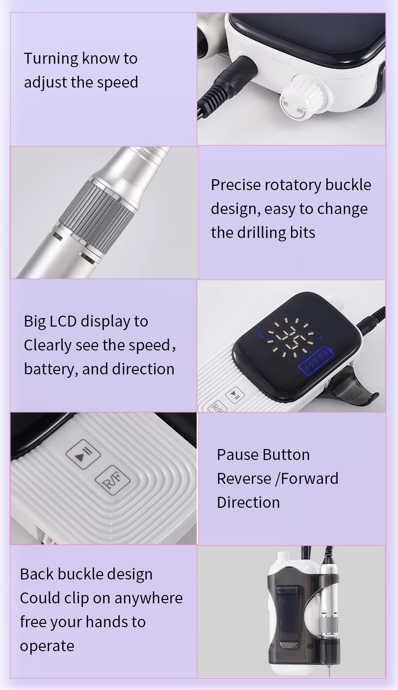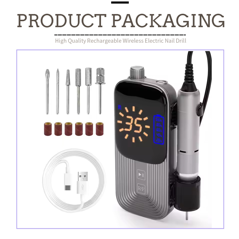 Conjunto de broca de unhas elétrica para remover esmalte em gel 65w 35000rpm