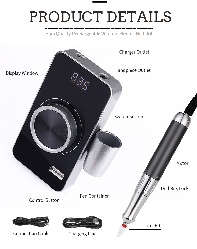 | Detalhes da broca elétrica esfoliante de unhas de 35.000 RPM |