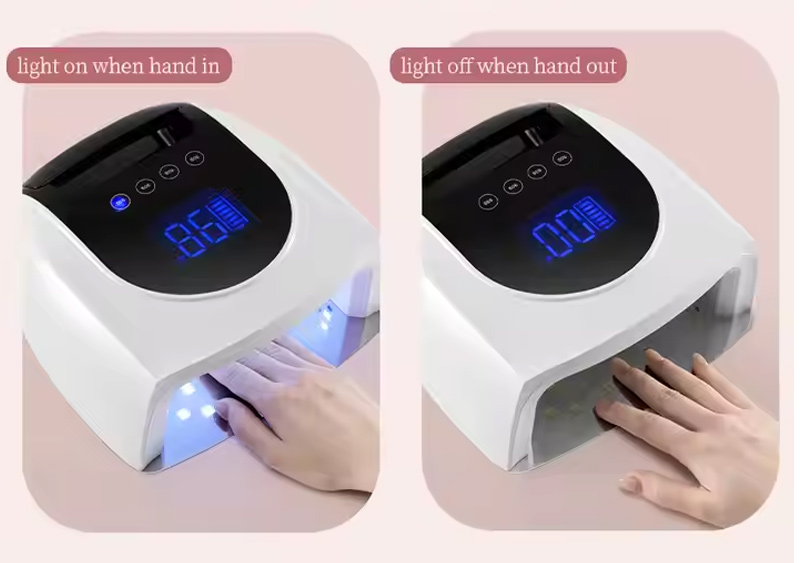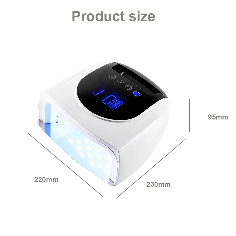 O produto garante uma secagem uniforme da cola sem encolhimento. As suas fontes de luz duplas proporcionam um aquecimento suave para evitar a descoloração das mãos e o cansaço visual, adequadas tanto para as mãos como para os pés, proporcionando resultados de secagem notavelmente rápidos.