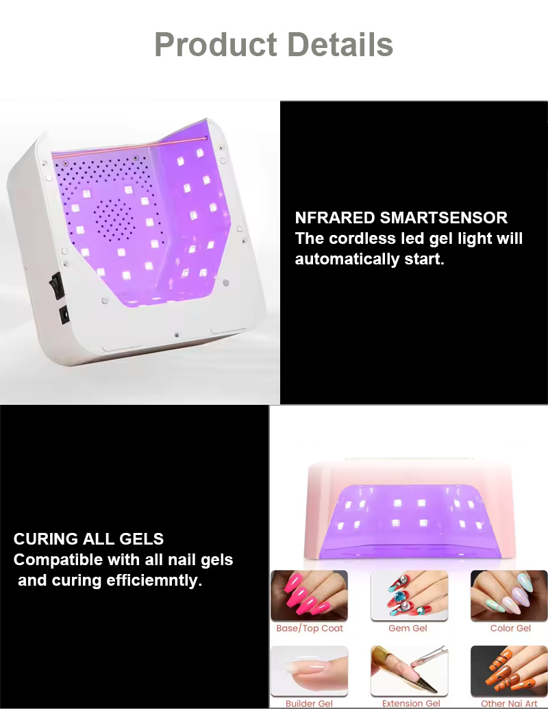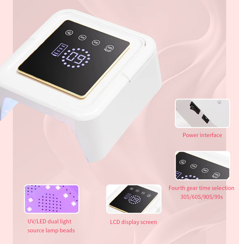 Esta lâmpada de secagem rápida para esmalte de gel de alta qualidade garante uma secagem uniforme da cola sem encolher. As suas fontes de luz duplas proporcionam um aquecimento suave para evitar a descoloração das mãos e o cansaço visual, adequadas tanto para as mãos como para os pés, proporcionando resultados de secagem notavelmente rápidos.
