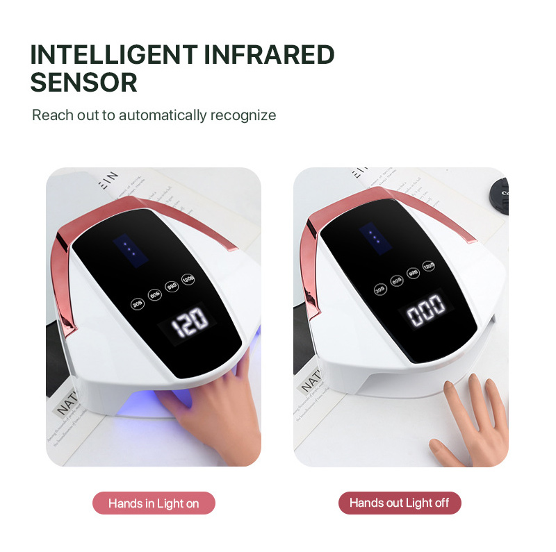 O produto garante uma secagem uniforme da cola sem encolhimento. As suas fontes de luz duplas proporcionam um aquecimento suave para evitar a descoloração das mãos e o cansaço visual, adequadas tanto para as mãos como para os pés, proporcionando resultados de secagem notavelmente rápidos.