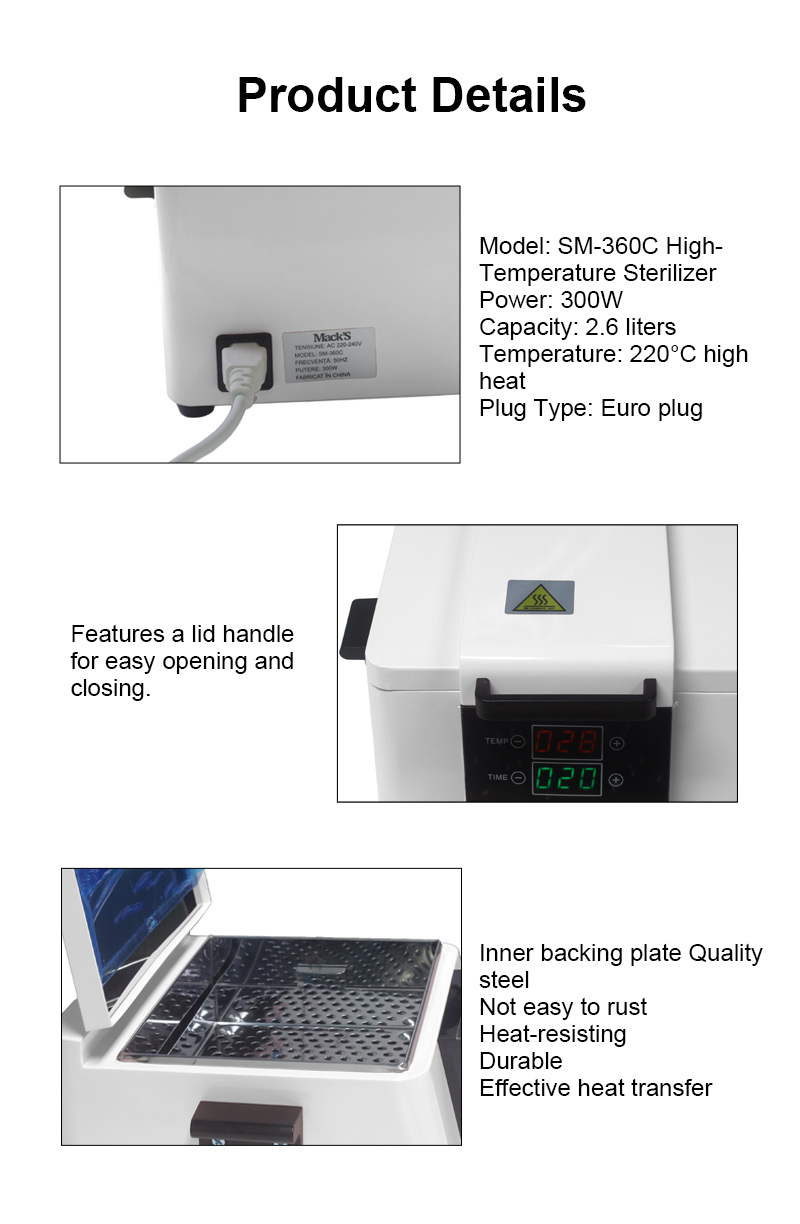 Esterilizador inteligente com temporizador e display de esterilização para aquecimento
