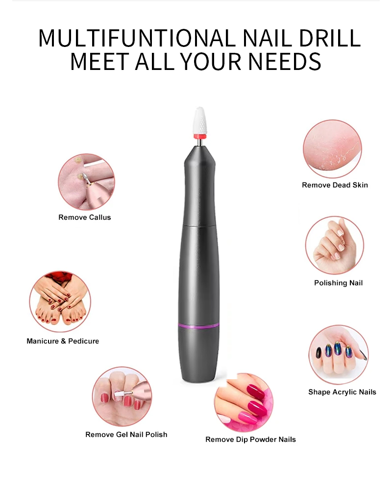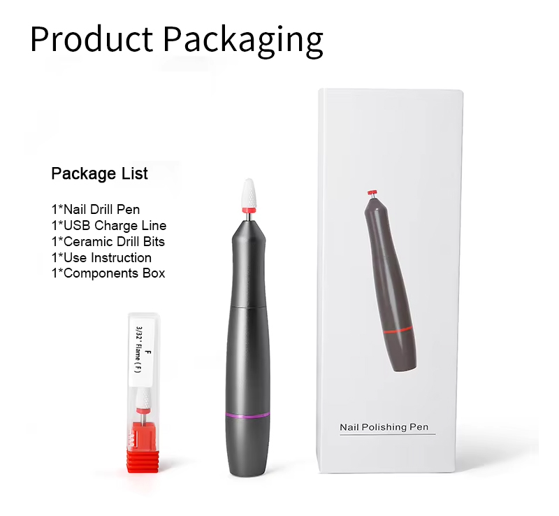 Característica do produto e aplicação da broca de nail art em forma de caneta de baixo ruído