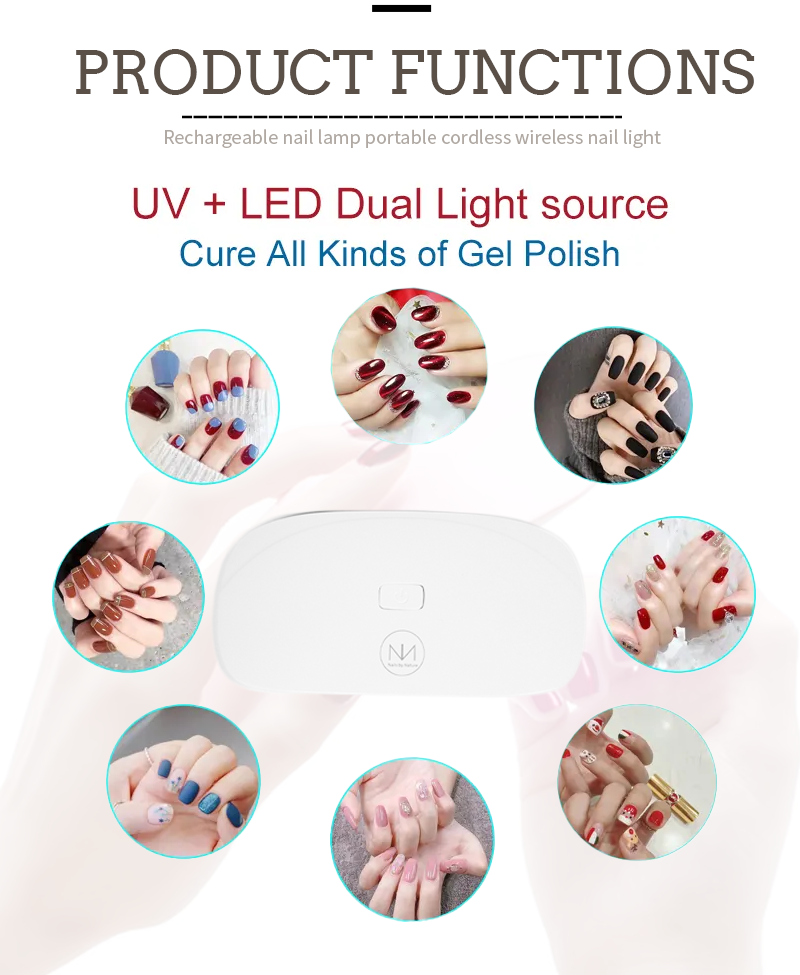 O produto garante uma secagem uniforme da cola sem encolhimento. As suas fontes de luz duplas proporcionam um aquecimento suave para evitar a descoloração das mãos e o cansaço visual, adequadas tanto para as mãos como para os pés, proporcionando resultados de secagem notavelmente rápidos.