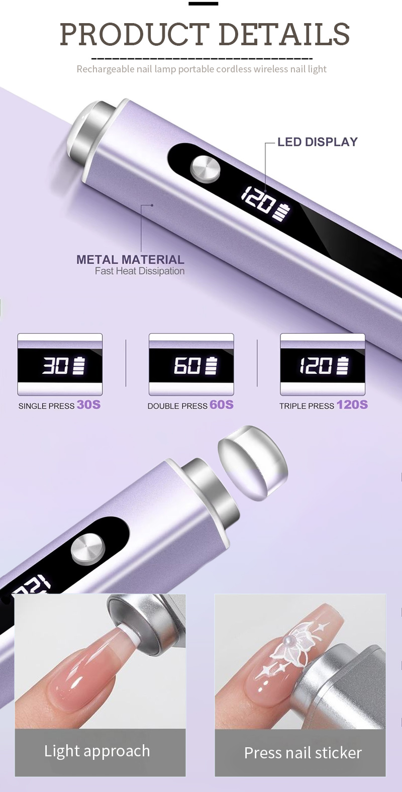 O design de exibição do produto, há uma tela LCD inteligente que pode exibir a contagem regressiva do tempo de cola de cozimento, a tela do tempo acende automaticamente durante o uso e fecha automaticamente quando não estiver em uso.