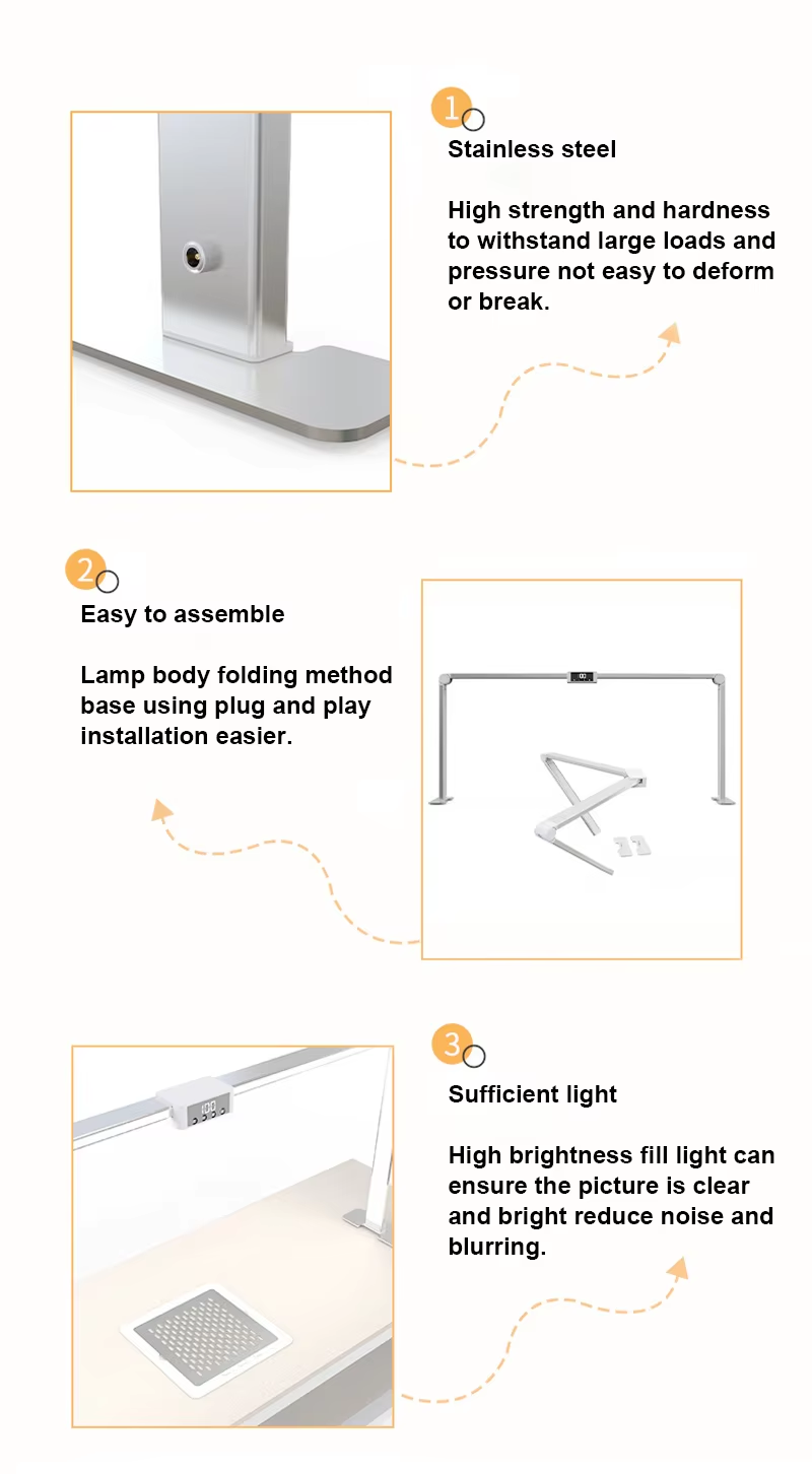 3, chassi de ferro, suporte estável para o corpo da lâmpada.