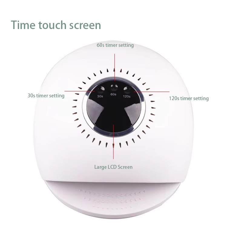 1)Lâmpada de unha recarregável Versão profissional 60W Design de exibição de superfície do produto com tela LCD LCD Tela, exibir funções do produto e configurações de tempo de cura rapidamente, os clientes podem definir funções e tempo diferentes de acordo com a demanda.