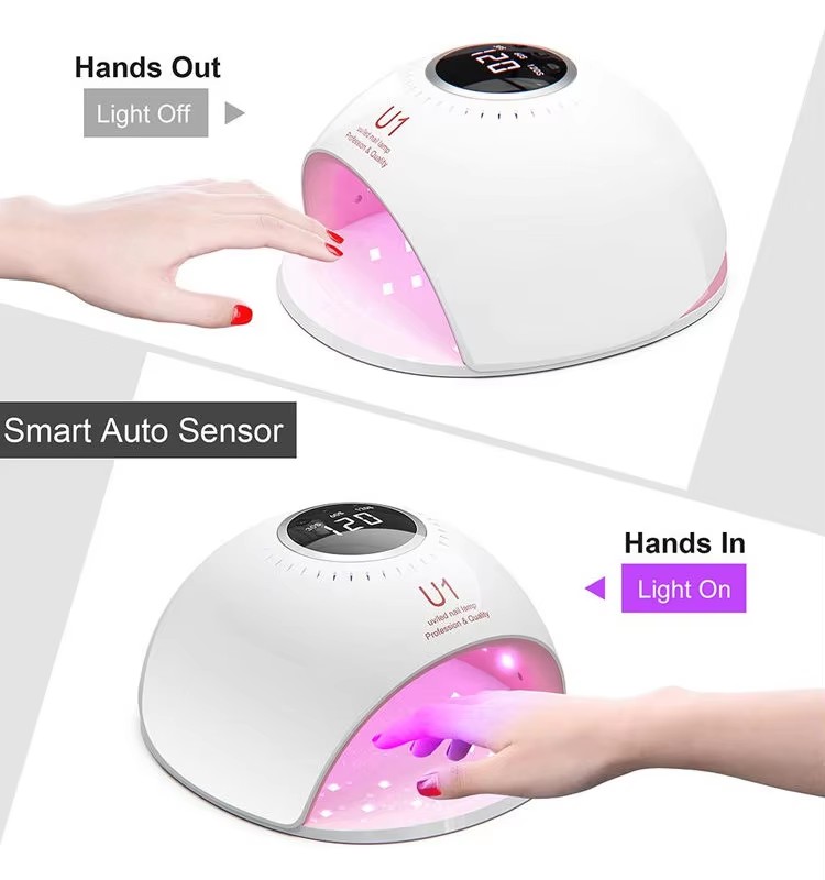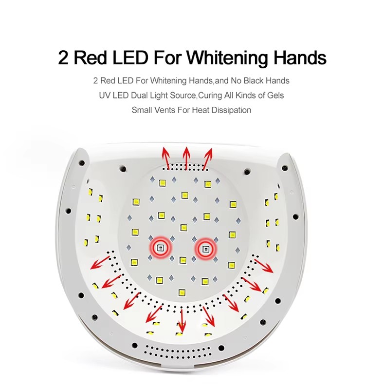 2)Recarregam a luz de luz da luz de unhas da luz de unhas de unhas 60W de miçangas leves de produto uniformemente recebem irradiação de 180 graus de luz, secando mais rápido, sem ângulo morto, tempo de espera geral mais longo.