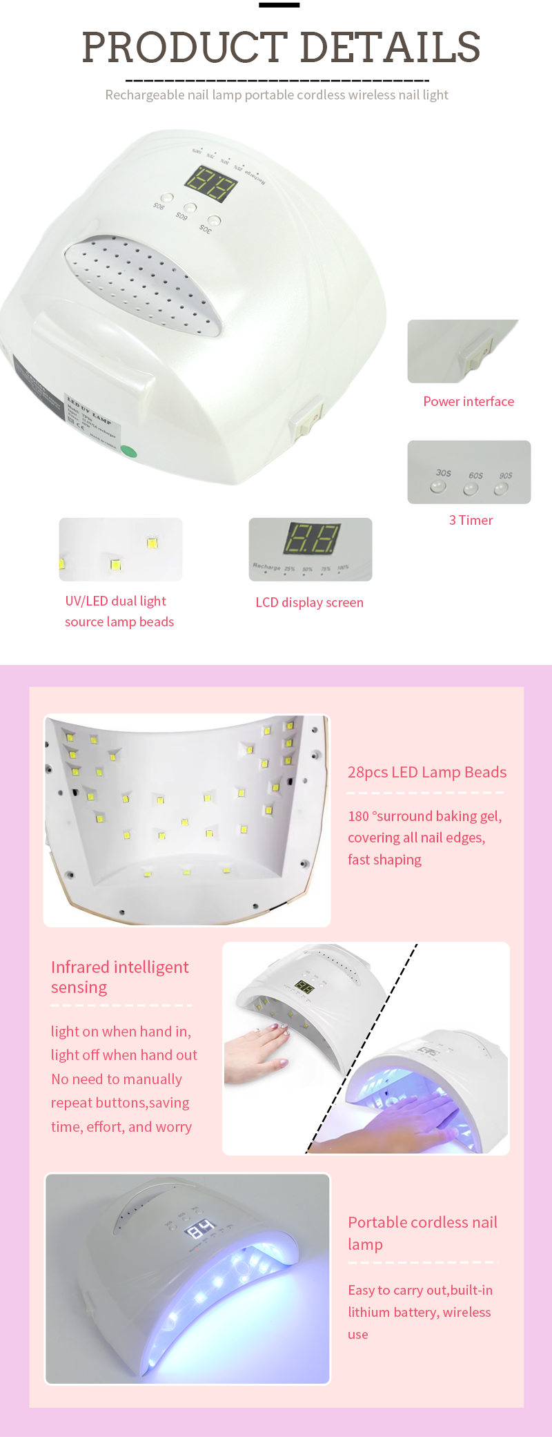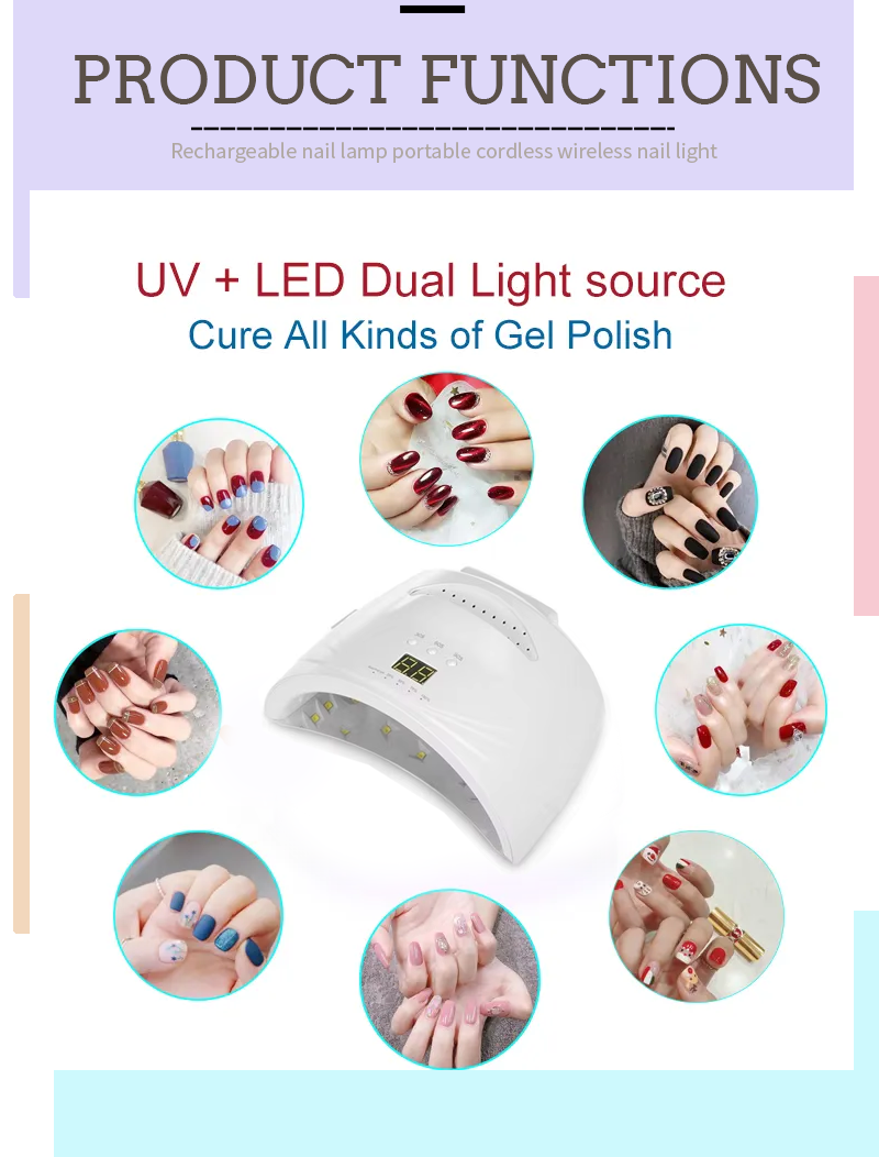 O produto garante uma secagem uniforme da cola sem encolhimento. As suas fontes de luz duplas proporcionam um aquecimento suave para evitar a descoloração das mãos e o cansaço visual, adequadas tanto para as mãos como para os pés, proporcionando resultados de secagem notavelmente rápidos.