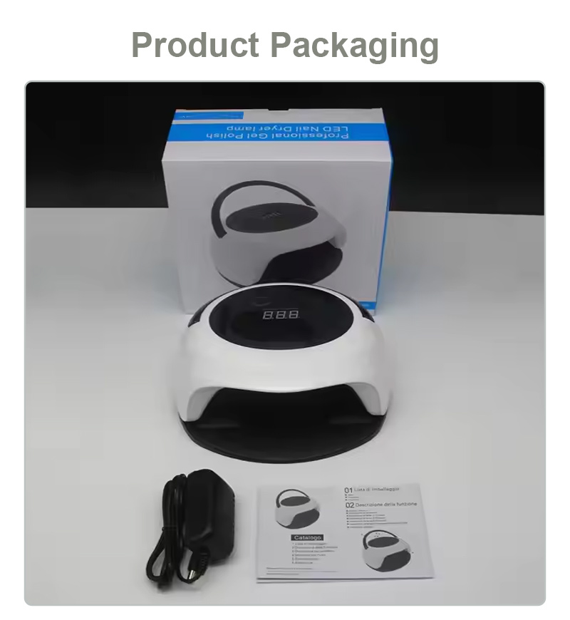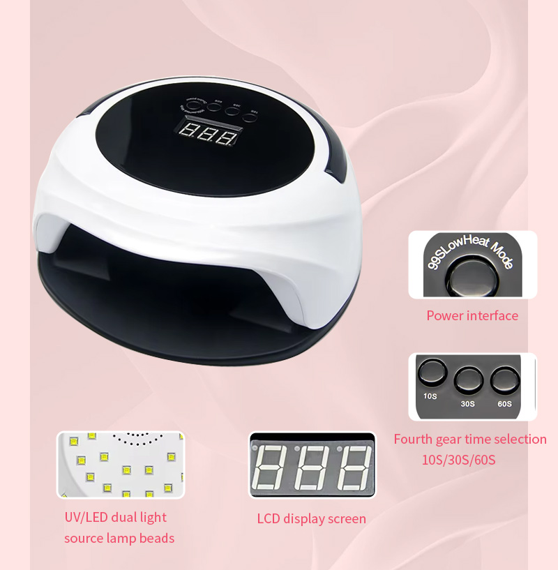 A lâmpada de secagem de unhas com função de sensor automático garante uma secagem uniforme da cola sem encolhimento. As suas fontes de luz duplas proporcionam um aquecimento suave para evitar a descoloração das mãos e o cansaço visual, adequadas tanto para as mãos como para os pés, proporcionando resultados de secagem notavelmente rápidos.