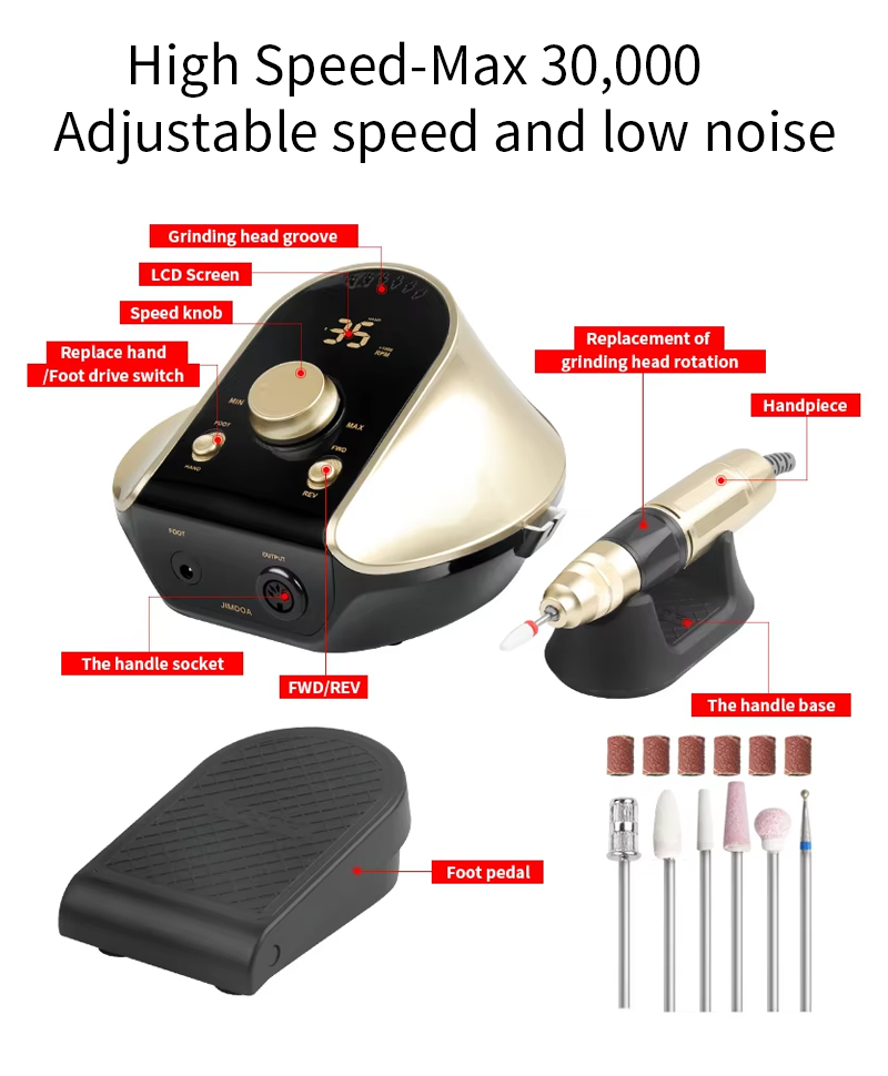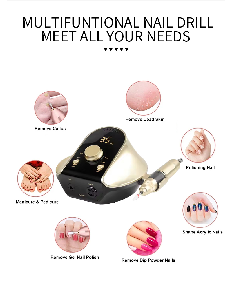 Conjunto de broca de unhas elétrica para remover esmalte em gel 65w 35000rpm