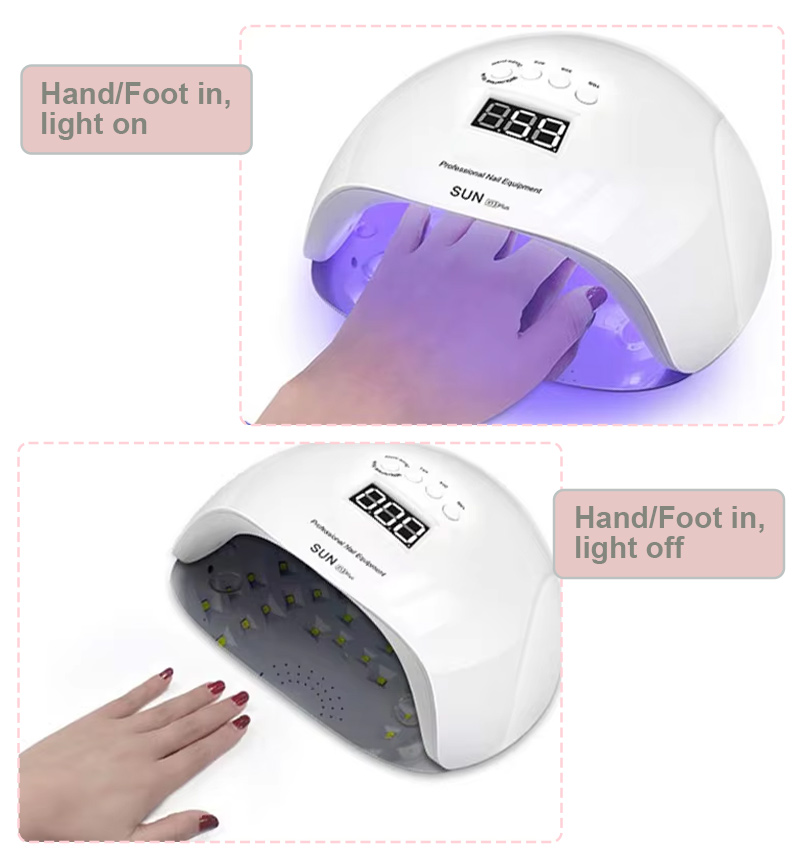 O produto garante uma secagem uniforme da cola sem encolhimento. As suas fontes de luz duplas proporcionam um aquecimento suave para evitar a descoloração das mãos e o cansaço visual, adequadas tanto para as mãos como para os pés, proporcionando resultados de secagem notavelmente rápidos.