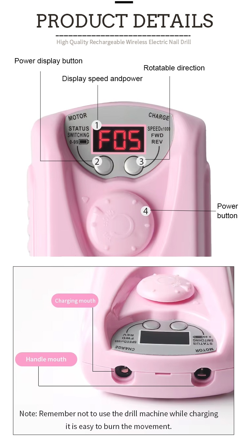 | Detalhes da broca elétrica profissional sem fio para unhas |