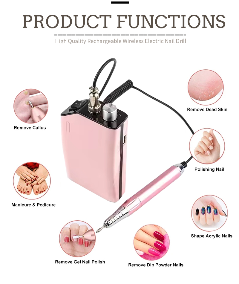Conjunto de broca de unhas elétrica para remover esmalte em gel 65w 35000rpm