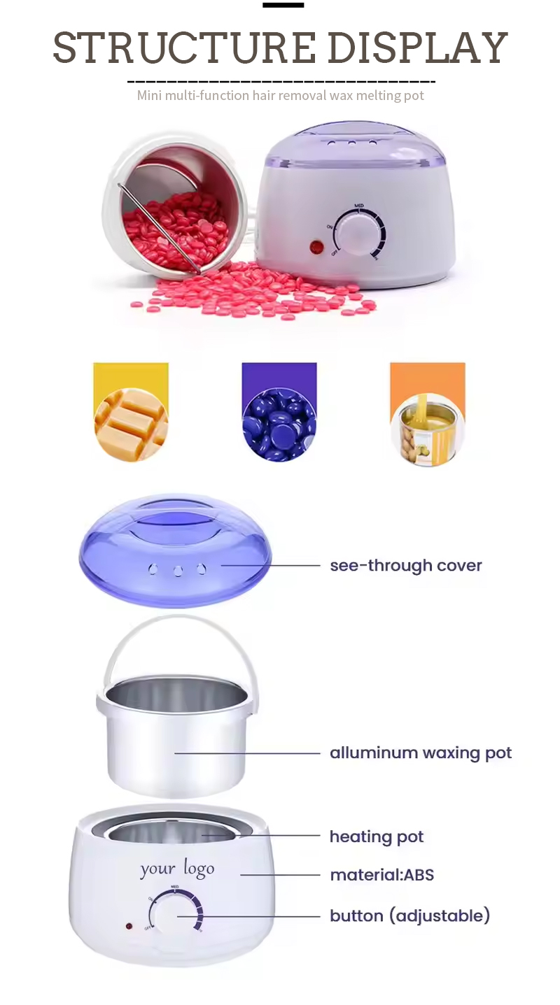 - Adequado para todos os tipos de ceras: depilação dura, depilação em tira, depilação com parafina