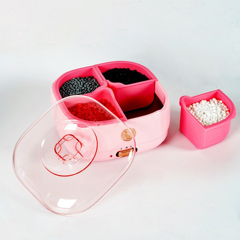 Método de operação de cera depilatória do produto, quanto maior a temperatura, mais rápido a cera derrete, quanto mais baixa a temperatura, mais lentamente a cera derrete, primeiro despeje na quantidade apropriada de grãos de cera depilatórios, aquecendo até que os grãos de cera derretam, depois partes depilatórias do uniformemente cera depilatória revestida e, finalmente, contra a direção do crescimento do cabelo.