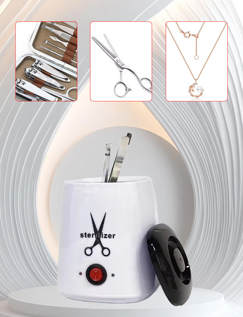 Este esterilizador gera calor principalmente através de um anel de aquecimento, utilizando altas temperaturas para desinfecção.