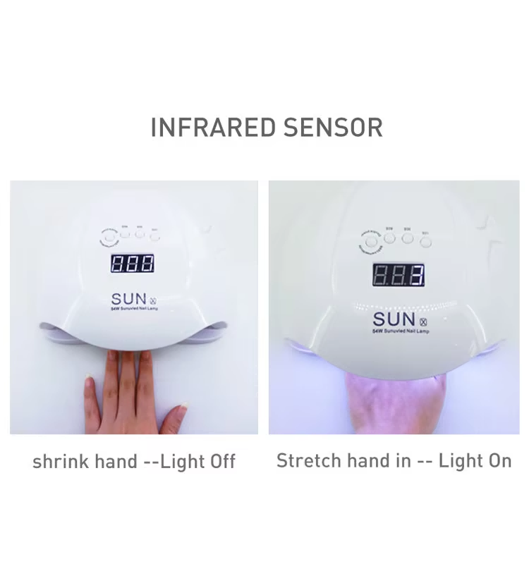 A lâmpada para unhas de gel de secagem rápida possui tecnologia de detecção inteligente infravermelha que acende automaticamente quando as mãos se aproximam e desliga quando as mãos se afastam - eliminando o incômodo de pressionar botões repetidamente e economizando tempo e esforço. A cola para cozimento de alta potência não requer muita espera, economizando tempo e esforço.