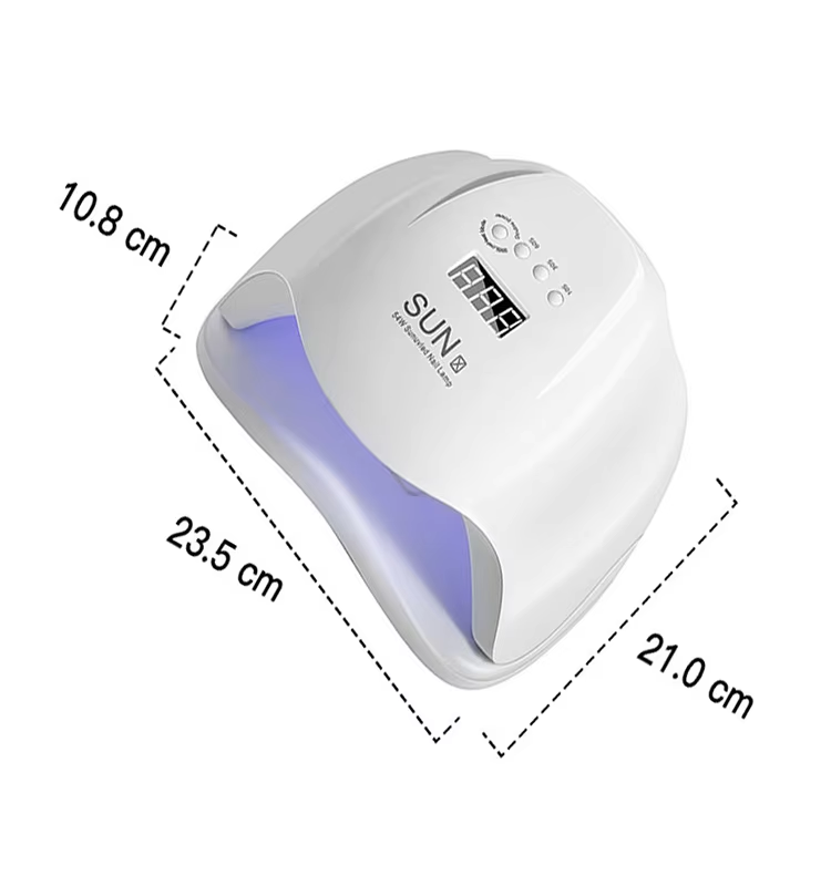 As lâmpadas para unhas de gel de secagem rápida têm 235 mm de comprimento, 210 mm de largura e 108 mm de altura, com grande capacidade e capacidade de usar mãos e pés, o que é muito conveniente.
