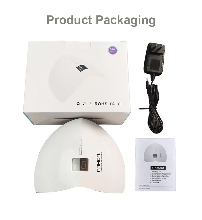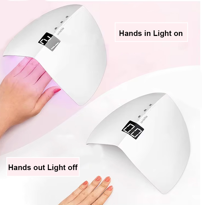 O produto garante uma secagem uniforme da cola sem encolhimento. As suas fontes de luz duplas proporcionam um aquecimento suave para evitar a descoloração das mãos e o cansaço visual, adequadas tanto para as mãos como para os pés, proporcionando resultados de secagem notavelmente rápidos.