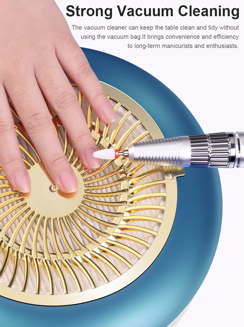 Produtos com forte adsorção de detritos de unhas não vazam poeira, mantêm a bancada limpa e arrumada, a aspiração rápida não vaza poeira de alta potência mais eficiente.
