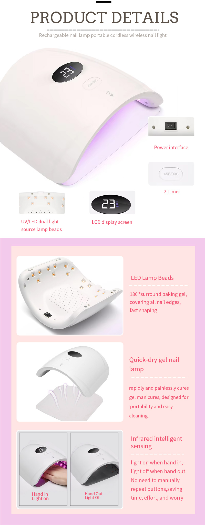 Lâmpada LED recarregável para secador de unhas 86w Protable